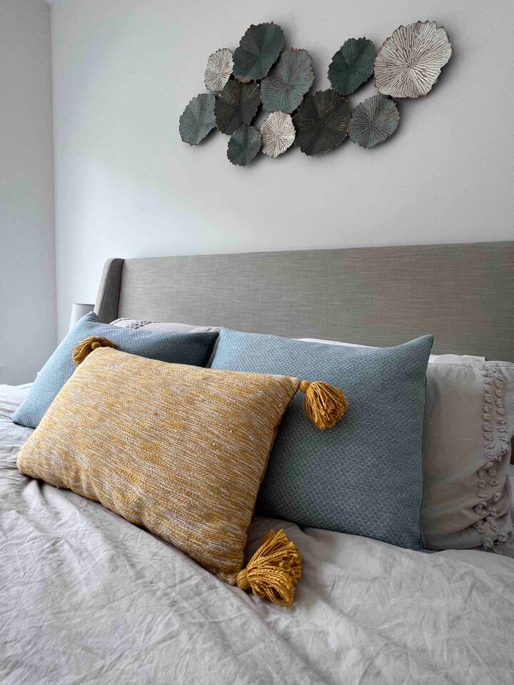 Whether you're a young family or traveling with friends, you'll find plenty of seating for everyone. The primary room boasts a king-sized bed and a convenient pull-out twin bed, walk-in closet and ensuite bathroom, catering to families with kids – just like ours! As fellow travelers with young children, we understand your needs, ensuring our space accommodates both solo adults and little ones. A guest bedroom, with spacious closet, on the opposite side of the condo will guarantee a good night’s sleep for all guests. An array of board games, books, and activities suitable for all ages, plus a selection of toys that will delight the kids. We've taken care of the small details too, providing children's bowls, plates, utensils, and bibs for your convenience. For your tiniest travelers, a Graco Pack & Play with a soft crib sheet awaits, and a foldable playmat offers a safe and comfortable space. Don't miss the inviting patio area with ample seating and an electric grill, perfect for relaxed outdoor meals. Plus, enjoy the versatility of our coffee table with a tabletop that rises – ideal for work or enjoying meals in a cozy setting. And of course, our fully equipped kitchen ensures you have everything you need for a seamless stay. Your family's vacation experience awaits!